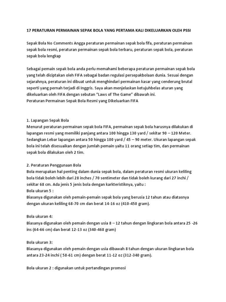 17 Peraturan Permainan Sepak Bola Pdf